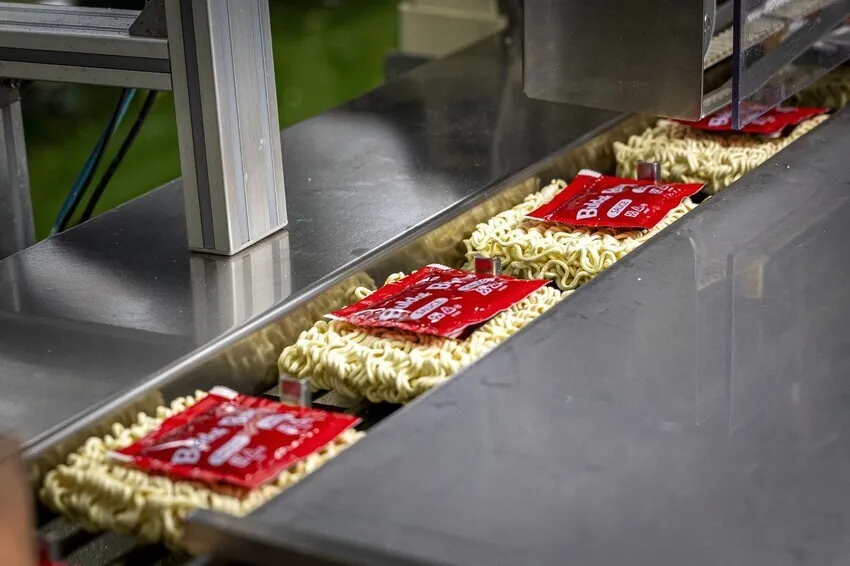 [사진:삼양식품의 밀양 제1공장에서 국외로 수출되는 불닭볶음면이 생산되고 있다. 삼양식품 제공]