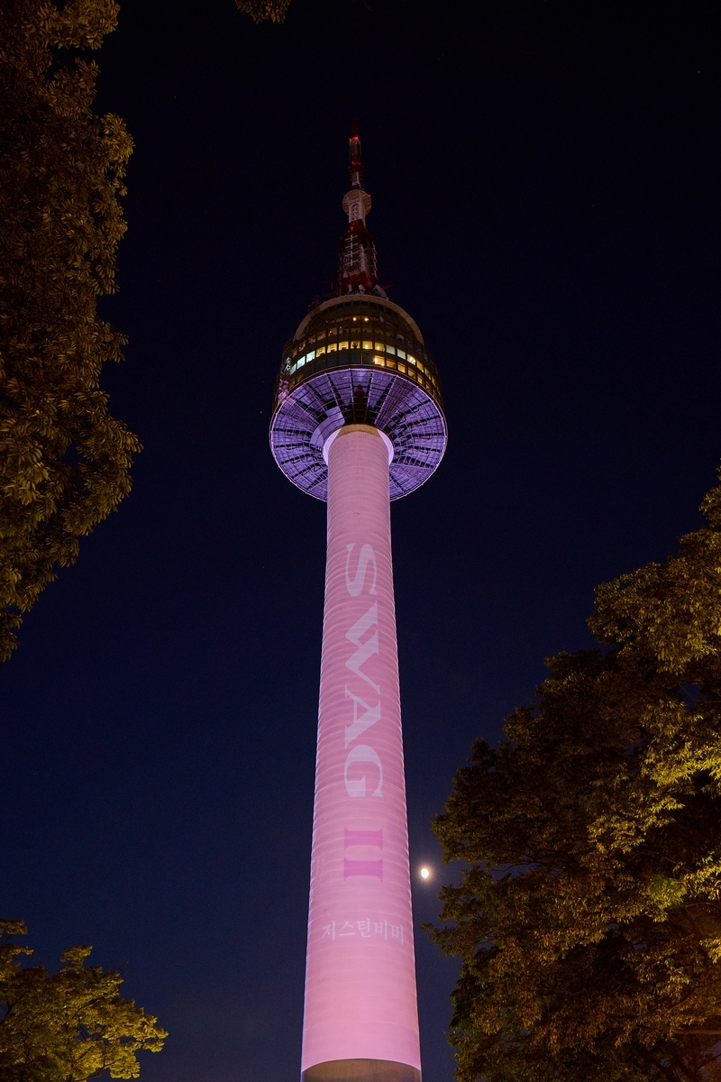 유니버설뮤직에 따르면 저스틴 비버는 4일 서울 남산 YTN서울타워를 새 앨범 ‘스웨그 2’(SWAG II)를 상징하는 색상으로 연출했다. 비버는 같은 이미지를 자신의 소셜미디어에 공유하며 글로벌 팬들과 동시에 소통에 나섰다.
