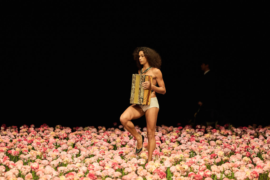 작품은 9000송이 카네이션으로 뒤덮인 무대를 배경으로 전개된다. 화려하고 아름다운 이미지 위로 군화를 신은 인물이 지나가고, 무용수들은 춤과 노래, 말 걸기를 오가며 유머와 불안을 교차시킨다. 겉으로는 낭만적이고 몽환적인 장면처럼 보이지만, 안으로는 억압과 통제, 인간관계의 긴장과 위태로움이 서서히 드러나는 구조다. 공연 말미 꽃밭이 짓밟히는 장면은 이 작품의 상징성을 압축하는 이미지로 받아들여져 왔다.