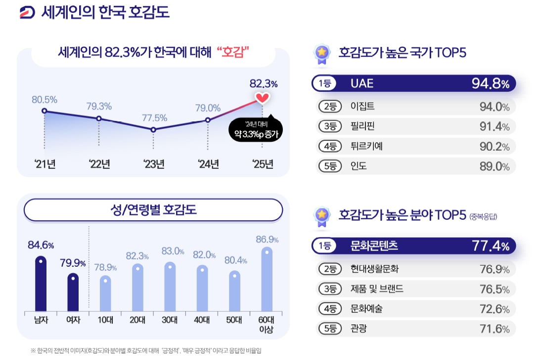 한국 호감도 82.3% ‘사상 최고’…중동·아프리카 90% 돌파, K콘텐츠가 바꾼 국가 위상